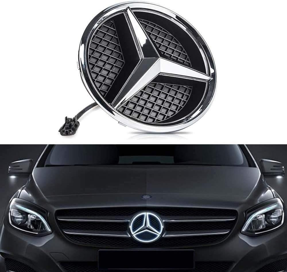 Amazon Com Patricon Xenon White Led Illuminated Logo Car Front Grilled Star Emblem For Mercedes Benz 2013 2018 A B C Cls E Glk Gl R Series Center Front Badge Lamp Light Automotive